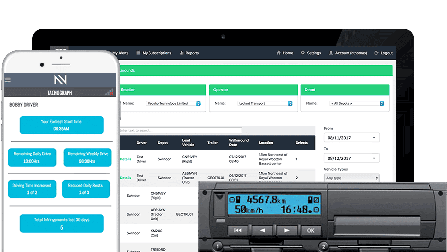 • Full suite of reports incorporating all driver and vehicle compliance, can be generated by user     on-line at any time or set up as a subscription to arrive by email at any given date/time